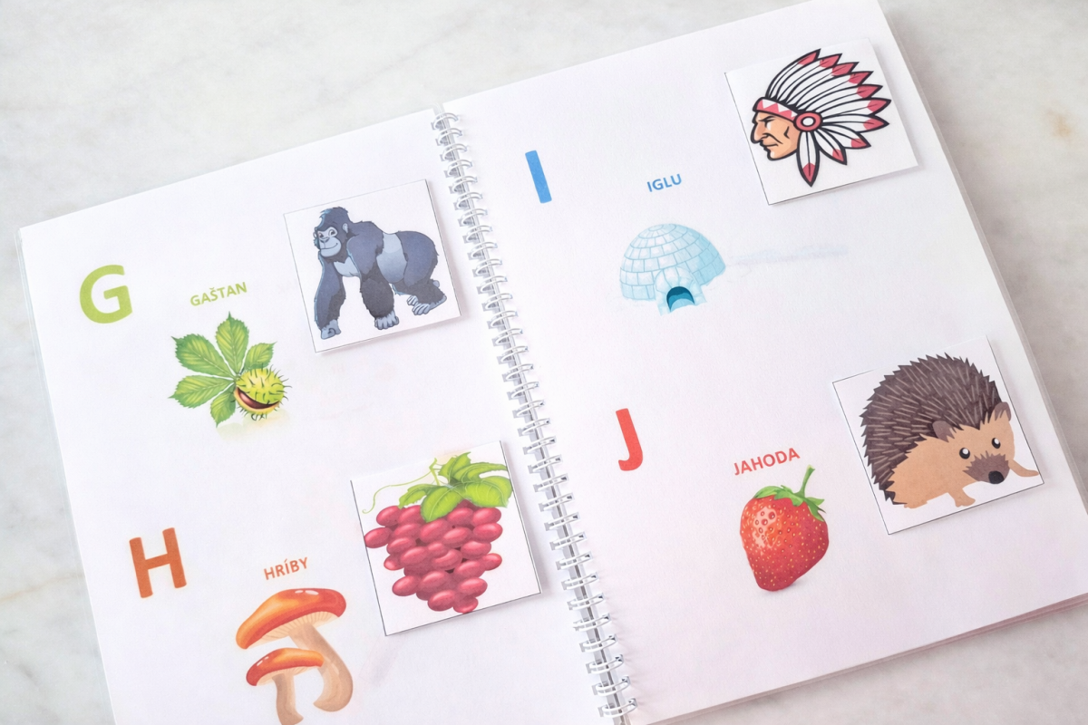 Tlačené na 200g papier a zalaminované v 125mic fólii. Kartičky s abecedou majú zaoblené rohy.