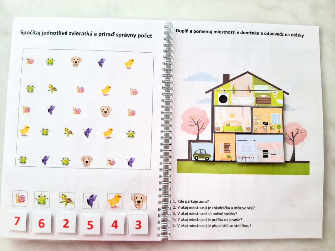 Plnenie 8 úloh v knihe aktivít na 9 tich stranách pripravuje dieťa na vzdelávanie v materskej škole či v prvom ročníku základnej školy. Učí dieťa pracovať podľa požiadaviek zadania, no stále veľmi zábavnou, zaujímavou a kreatívnou formou. Vďaka tomu, že všetky kartičky s riešením sú na suchý zips, dieťa môže úlohy plniť stále znova a znova, či dokonca hrať sa spolu so svojím kamarátom. Knihu môžu využívať viacerí súrodenci bez toho, aby sa kniha prvým vyriešením vyplnila, a teda znehodnotila pre ďalších malých riešiteľov.