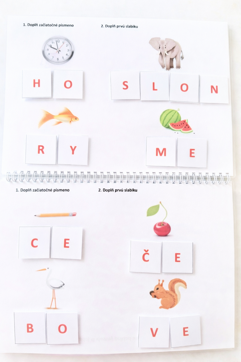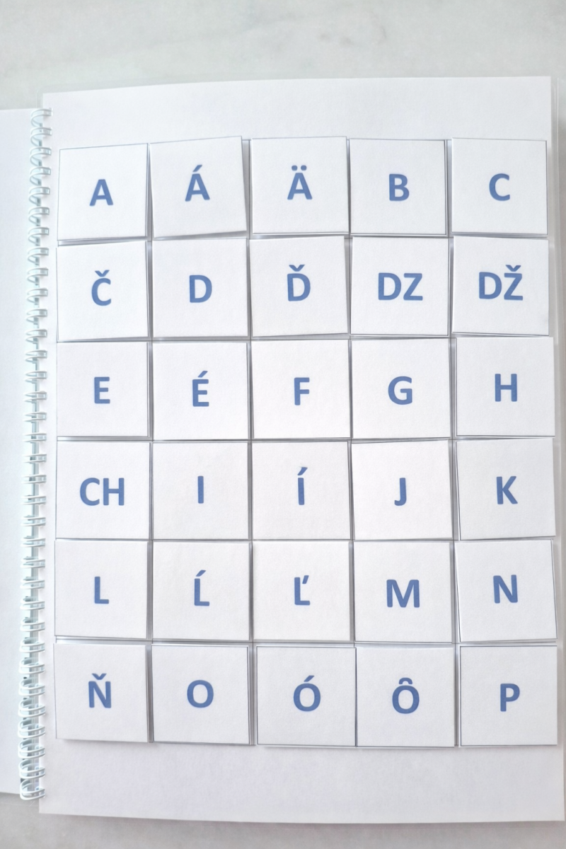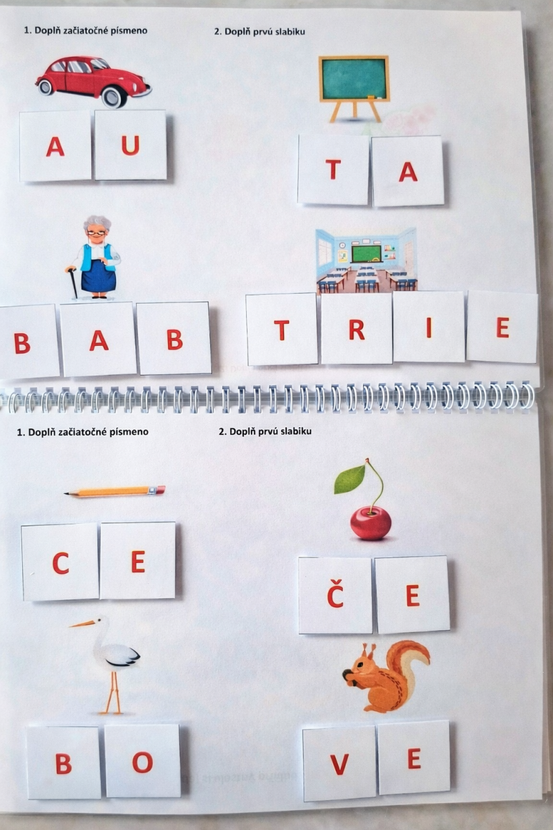 S knihou totiž nepracujete len podľa predpísaných úloh, ale môžete si vytvárať stále nové a nové príklady či slová. Každé písmeno abecedy sa nachádza v sade aspoň dvakrát, niektoré v slovenčine najviac používané samohlásky a spoluhlásky však aj viackrát. V knihe sa nachádzajú dva pásy suchého zipsu, ktoré budú fungovať ako tabuľa – budete si naň priliepať písmenká alebo čísla a keď skončíte, opäť si vytvoríte nové. Výhodou je, že suchý zips kartičky pevne drží, preto sa s knihou môžete zabávať aj všade tam, kde by hrozila povestná nuda – pri dlhých cestách či na miestach, kde treba čakať. Keď skončíte, kartičky pozbierate do vrecúška alebo prilepíte pevne do knihy. Hrať a zároveň sa učiť budete teda môcť kdekoľvek.
