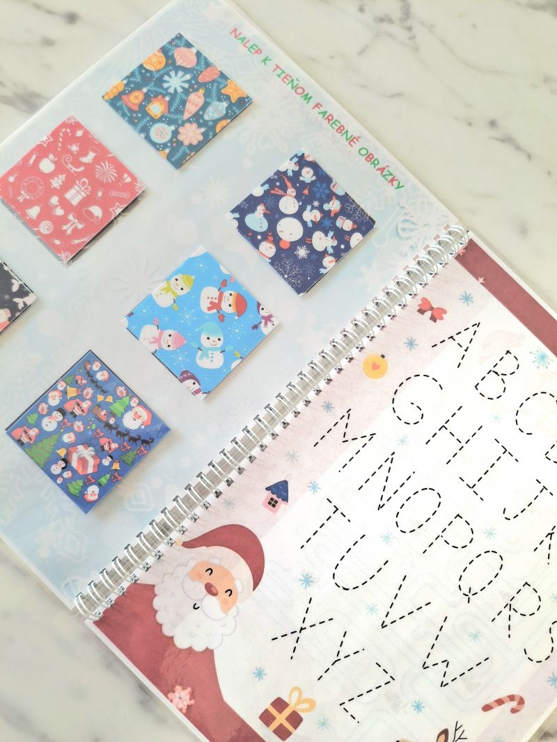 Kniha obsahuje 13 strán, spolu 17 úloh na vypĺňanie zmazateľnou fixkou alebo nalepovanie obrázkami na suchý zips. Zmazateľná fixka je v cene knihy.